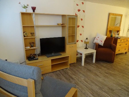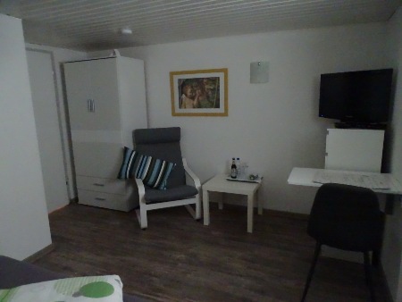 In den Zimmern befindet sich ein 140 cm breites Bett, welches auch zwei Personen genügend Platz zum erholsamen Schlaf bietet. Betten und Bettwäsche sind neu und werden von uns gestellt. DVBT-HD2-TV ist per Flachbildschirm in jedem Zimmer vorhanden. Ebenfalls kostenloses WLAN.
